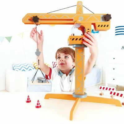 - Use this heavy-duty toy crane to lift materials around the construction site