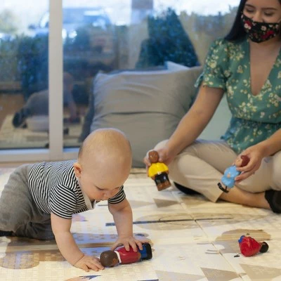 This ten-piece set of friends and family represents multiple cultures, ages, and genders. There are even two different pets! These easy to grip pieces are great for promoting dramatic play and fine motor skills. Children can role-play people in their family, circle of friends, neighborhood, and more! Use these figures in brightly colored clothes in a lesson about diversity and inclusion. The Tallest figure is 5″ tall. Blocks not included.